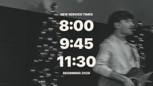 Services are Sundays at 8, 9:45, & 11:30 AM, and Wednesdays at 7 PM.